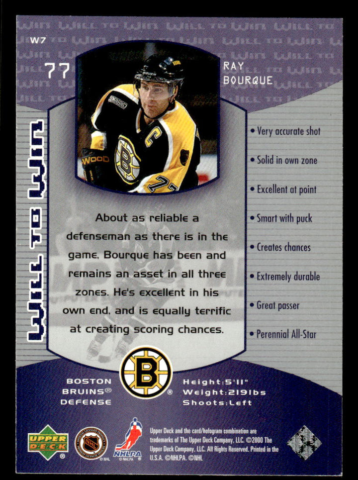 1999 UPPER DECK WAYNE GRETZKY RAY BOURQUE W7 MINT WIL TO WIN HOCKEY BOSTON BRUIN