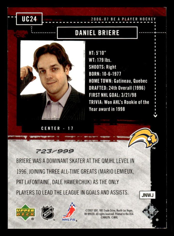 2006 BE A PLAYER DANIEL BRIERE UC24 MINT UP CLOSE 723/999 HOCKEY BUFFALO SABRES