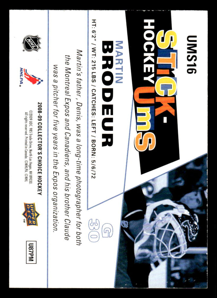 2008 COLLECTOR'S CHOICE MARTIN BRODEUR UMS16 MINT HOCKEY NEW JERSEY DEVILS