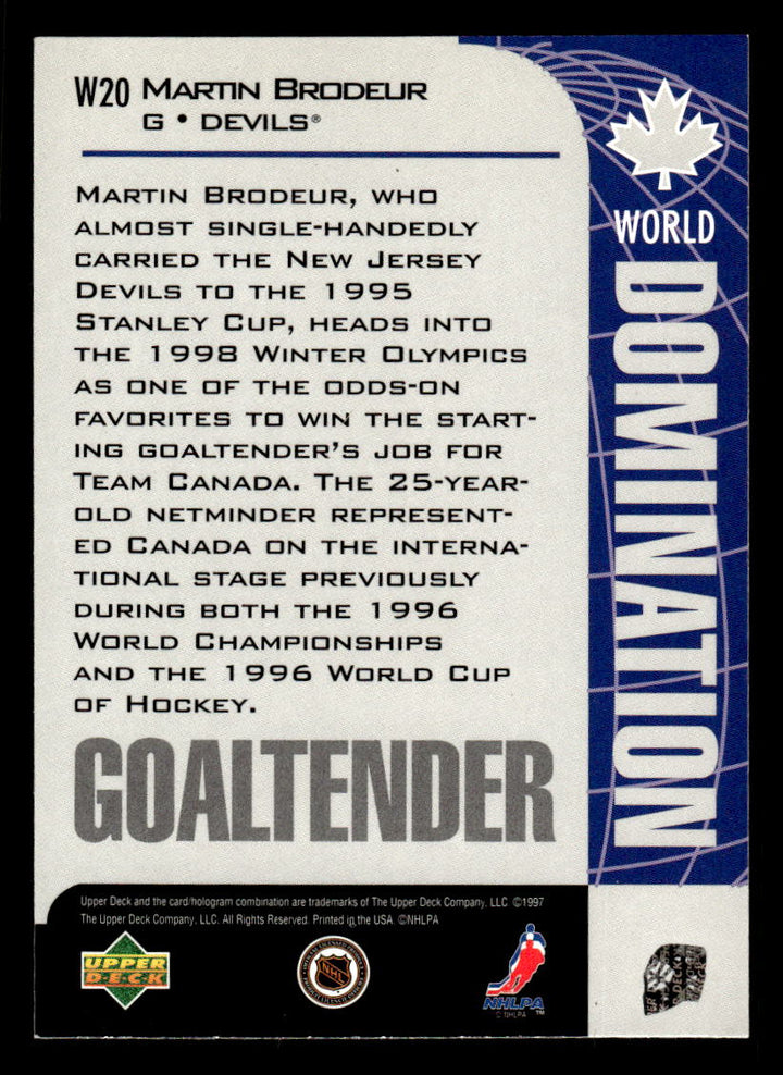 1997 COLLECTORS CHOICE MARTIN BRODEUR W20 MINT WORLD DOM HOCKEY NEW JERSEY DEVIL