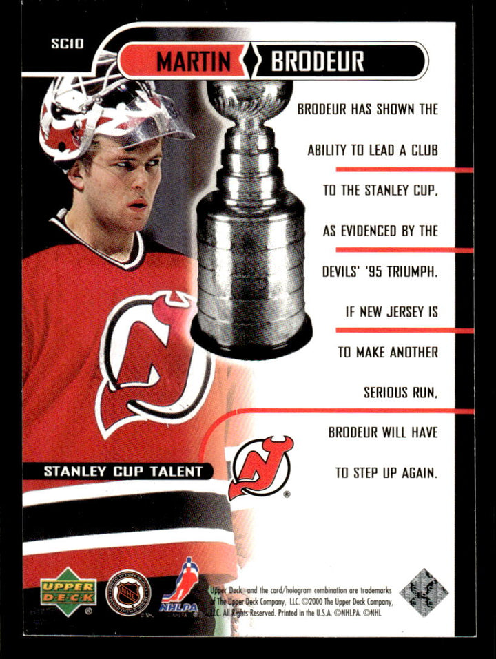 1999 UPPER DECK MVP STANLEY CUP EDITION MARTIN BRODEUR SC10 MINT STANLEY CUP TALENT HOCKEY NEW JERSEY DEVILS