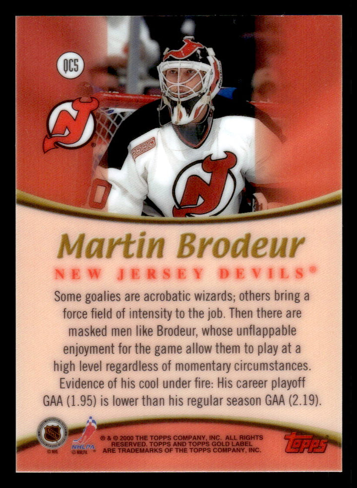 1999 TOPPS GOLD LABEL MARTIN BRODEUR QC5 MINT QUEST FOR THE CUP HOCKEY NEW JERSEY DEVILS