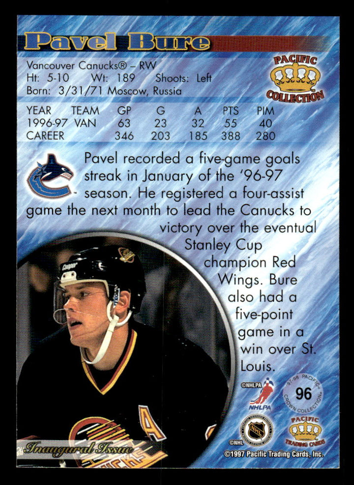 1997 PACIFIC CROWN COLLECTION PAVEL BURE 96 MINT COPPER HOCKEY VANCOUVER CANUCKS