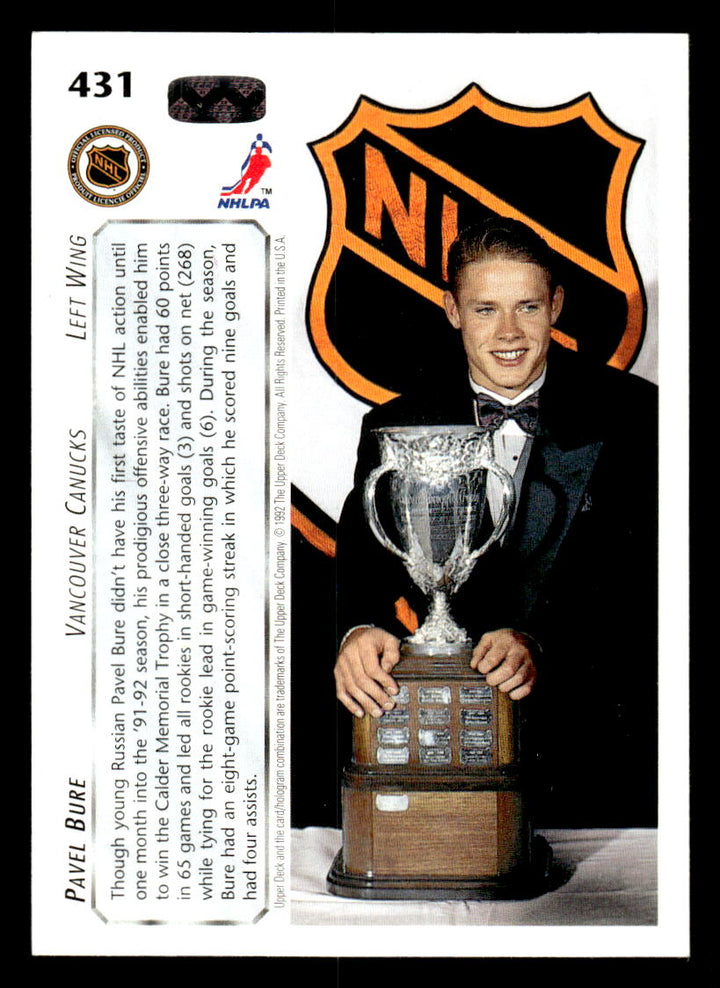 1992 UPPER DECK PAVEL BURE 431b MINT UPPER DECK TEXT AND LOGO HOLOGRAM HOCKEY VANCOUVER CANUCKS