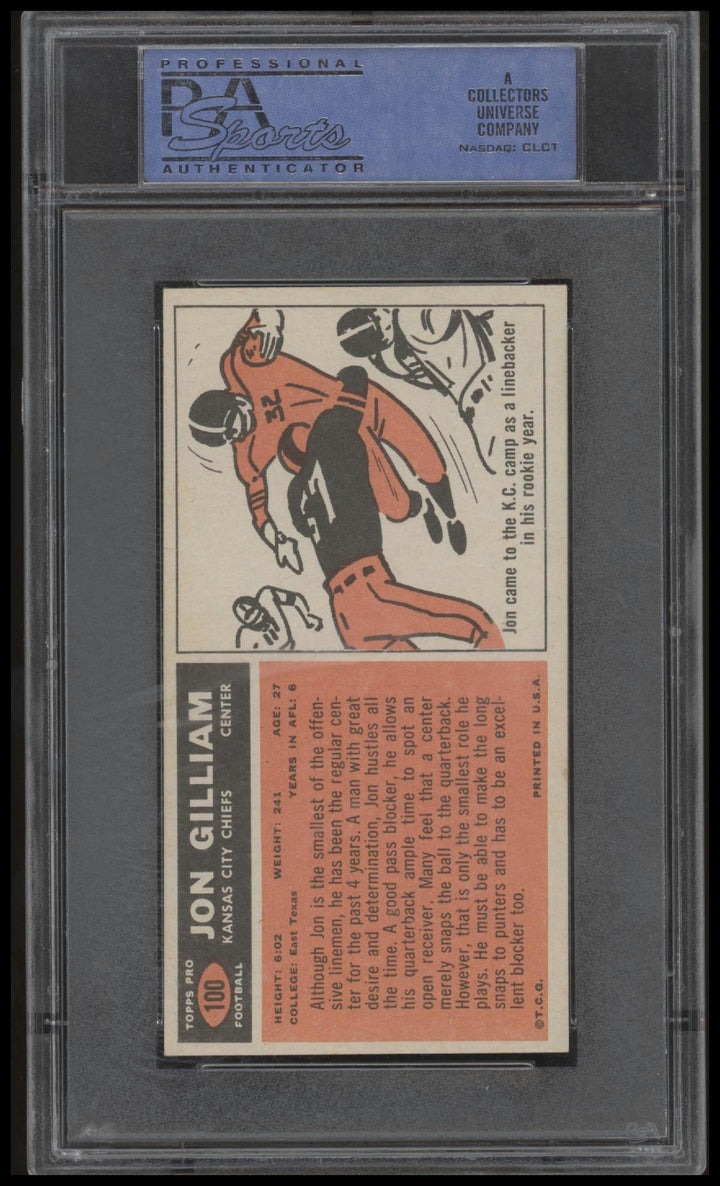 1965 TOPPS JON GILLIAM 100 NRMT RC PSA 7 FOOTBALL KANSAS CITY CHIEFS