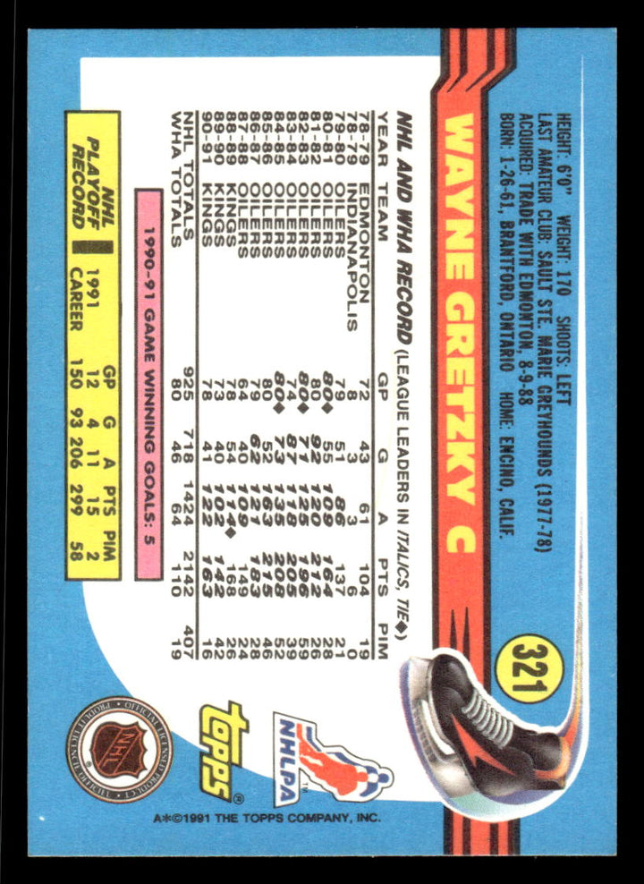 1991 TOPPS WAYNE GRETZKY 321 MINT HOCKEY LOS ANGELES KINGS