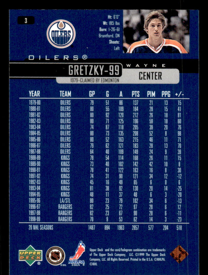 1999 UPPER DECK WAYNE GRETZKY 3 MINT HOCKEY EDMONTON OILERS