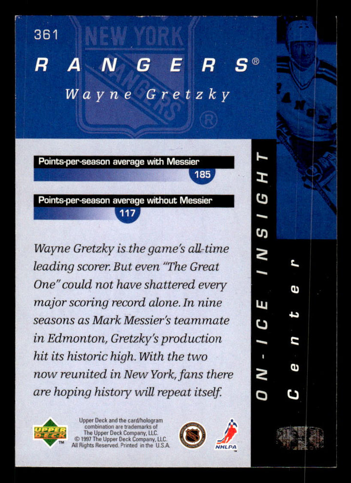 1996 UPPER DECK WAYNE GRETZKY 361 MINT HOCKEY NEW YORK RANGERS