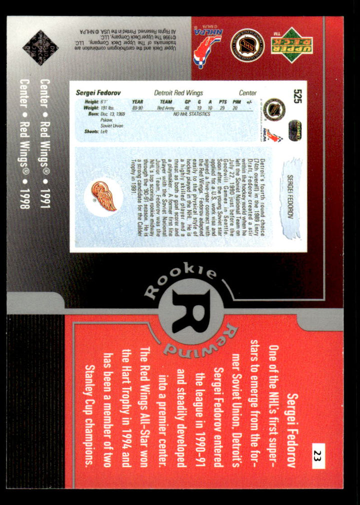 1998 UPPER DECK SERGEI FEDOROV 23 MINT HOCKEY DETROIT RED WINGS
