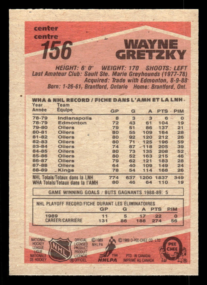 1989 O-PEE-CHEE WAYNE GRETZKY 156 MINT HOCKEY LOS ANGELES KINGS