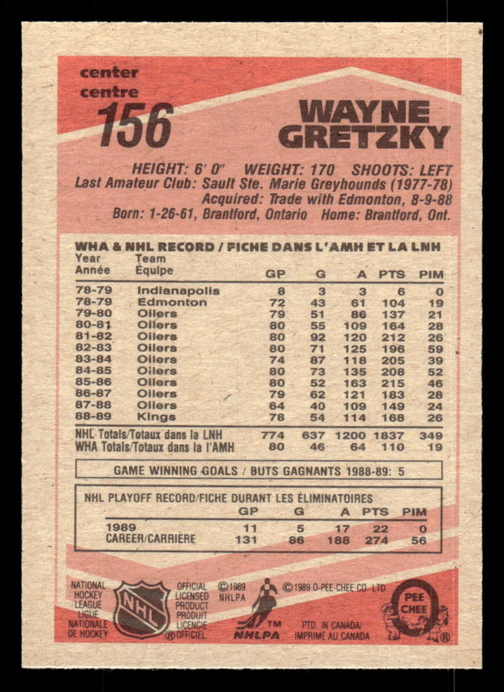 1989 O-PEE-CHEE WAYNE GRETZKY 156 MINT HOCKEY LOS ANGELES KINGS
