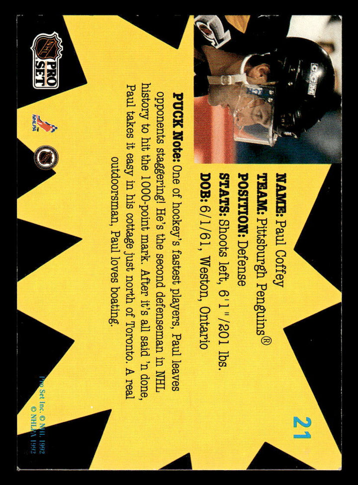 1991 PRO SET PUCK PAUL COFFEY 21 MINT HOCKEY PITTSBURGH PENGUINS