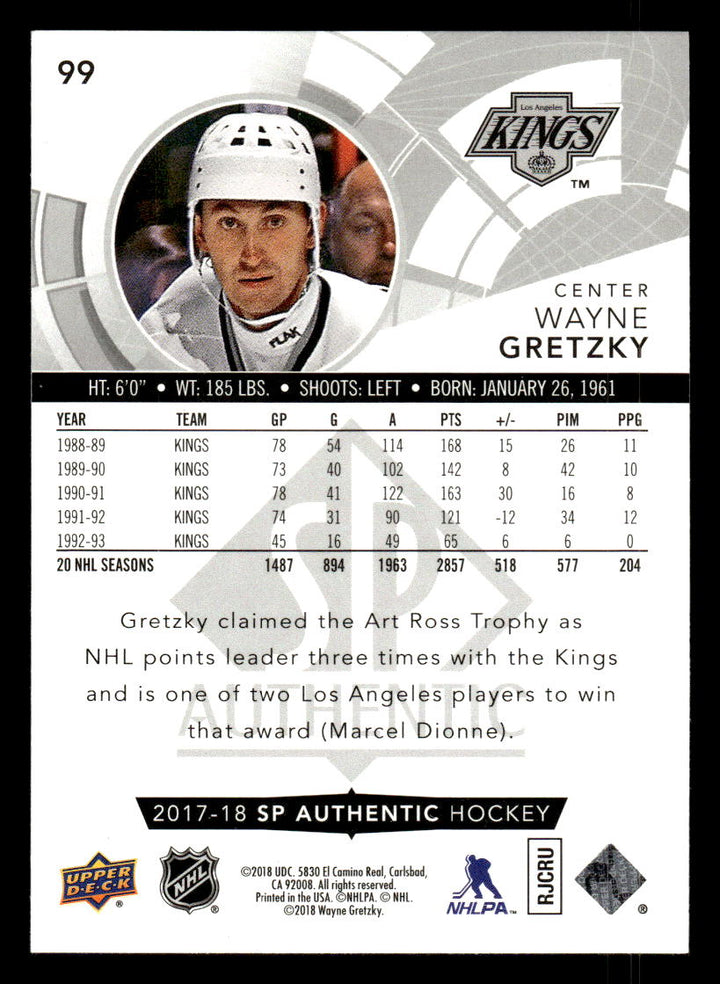 2017 SP AUTHENTIC WAYNE GRETZKY 99 MINT HOCKEY LOS ANGELES KINGS