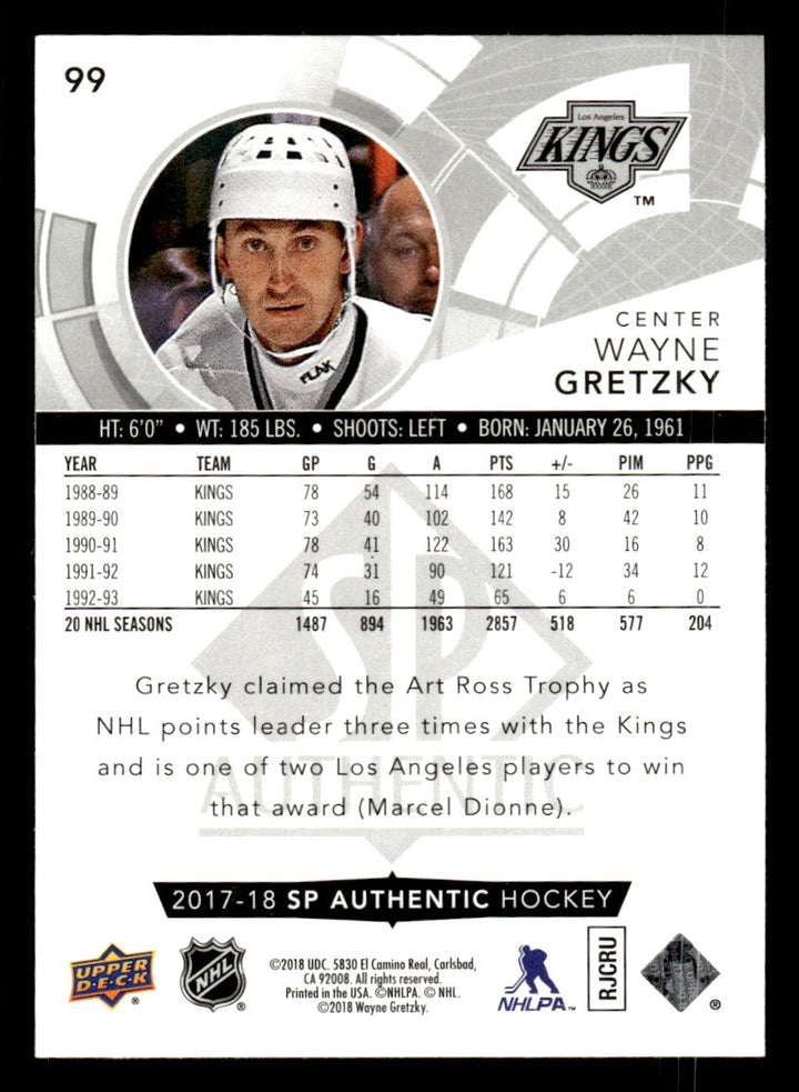 2017 SP AUTHENTIC WAYNE GRETZKY 99 MINT HOCKEY LOS ANGELES KINGS