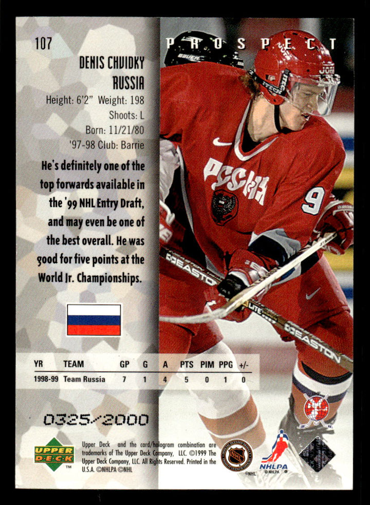 1998 UPPER DECK BLACK DIAMOND DENIS CHVIDKY 107 MINT HOCKEY RUSSIA