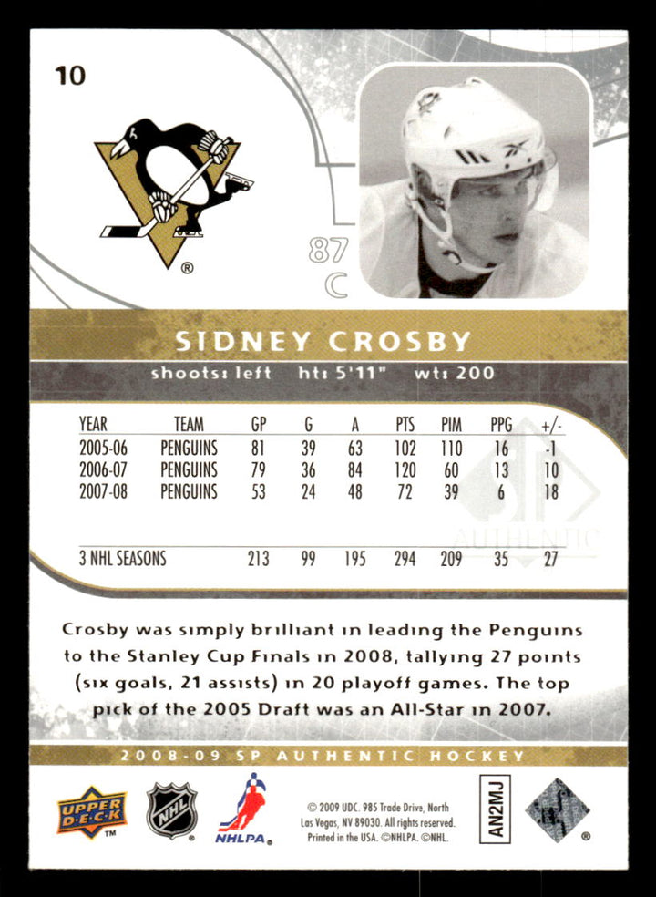 2008 SP AUTHENTIC SIDNEY CROSBY 10 MINT HOCKEY PITTSBURGH PENGUINS