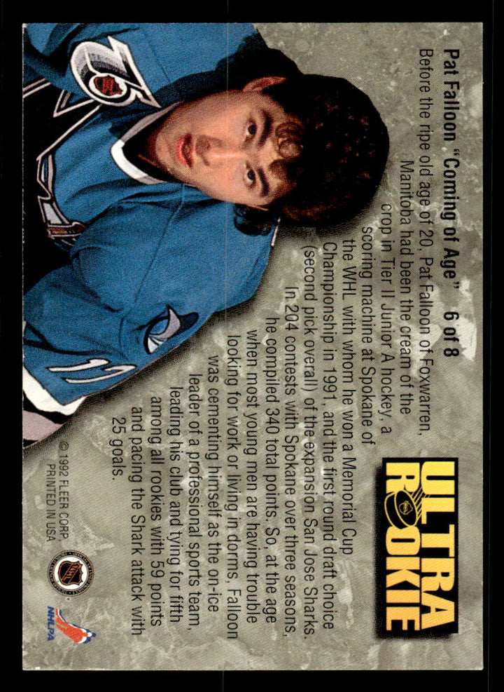 1992 ULTRA PAT FALLOON 6 NRMT ULTRA ROOKIES HOCKEY SAN JOSE SHARKS