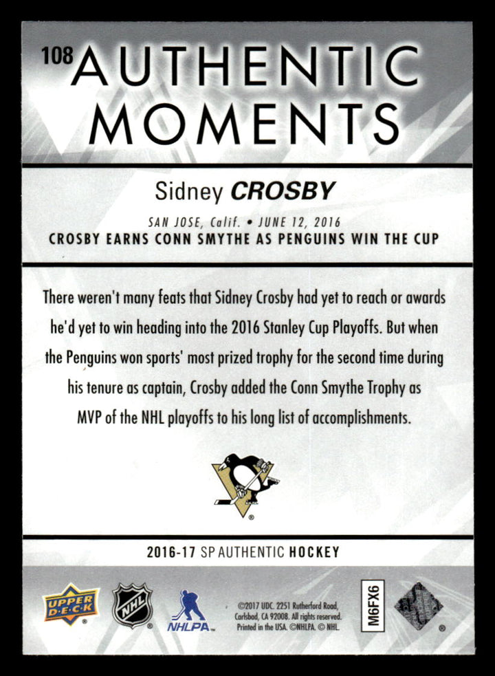 2016 SP AUTHENTIC SIDNEY CROSBY 108 MINT HOCKEY PITTSBURGH PENGUINS