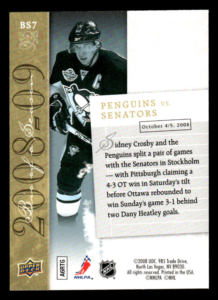 2008 UPPER DECK SIDNEY CROSBY BS7 MINT BIOGRAPHY OF A SEASON HOCKEY