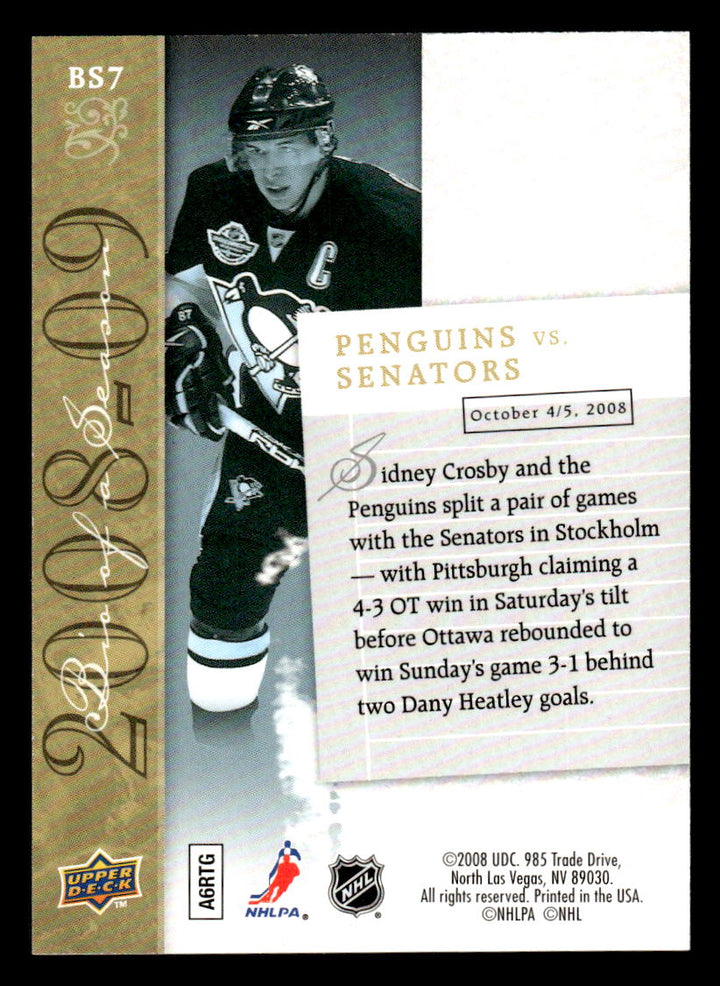 2008 UPPER DECK SIDNEY CROSBY BS7 MINT BIOGRAPHY OF A SEASON HOCKEY