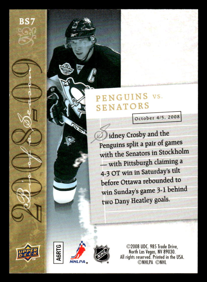 2008 UPPER DECK SIDNEY CROSBY BS7 MINT BIOGRAPHY OF A SEASON HOCKEY