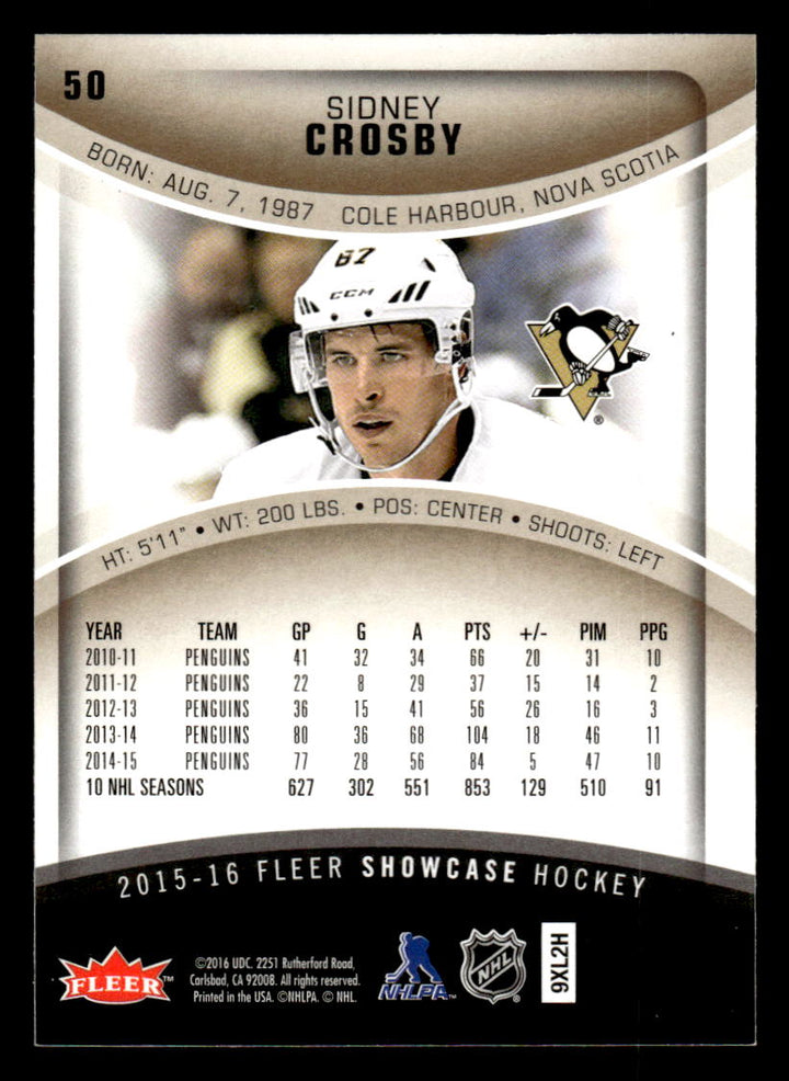 2015 FLEER SHOWCASE SIDNEY CROSBY 50 MINT HOCKEY PITTSBURGH PENGUINS