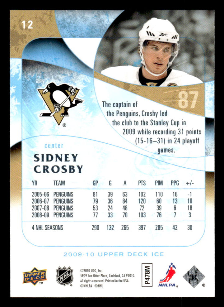 2009 UPPER DECK ICE SIDNEY CROSBY 12 MINT HOCKEY PITTSBURGH PENGUINS