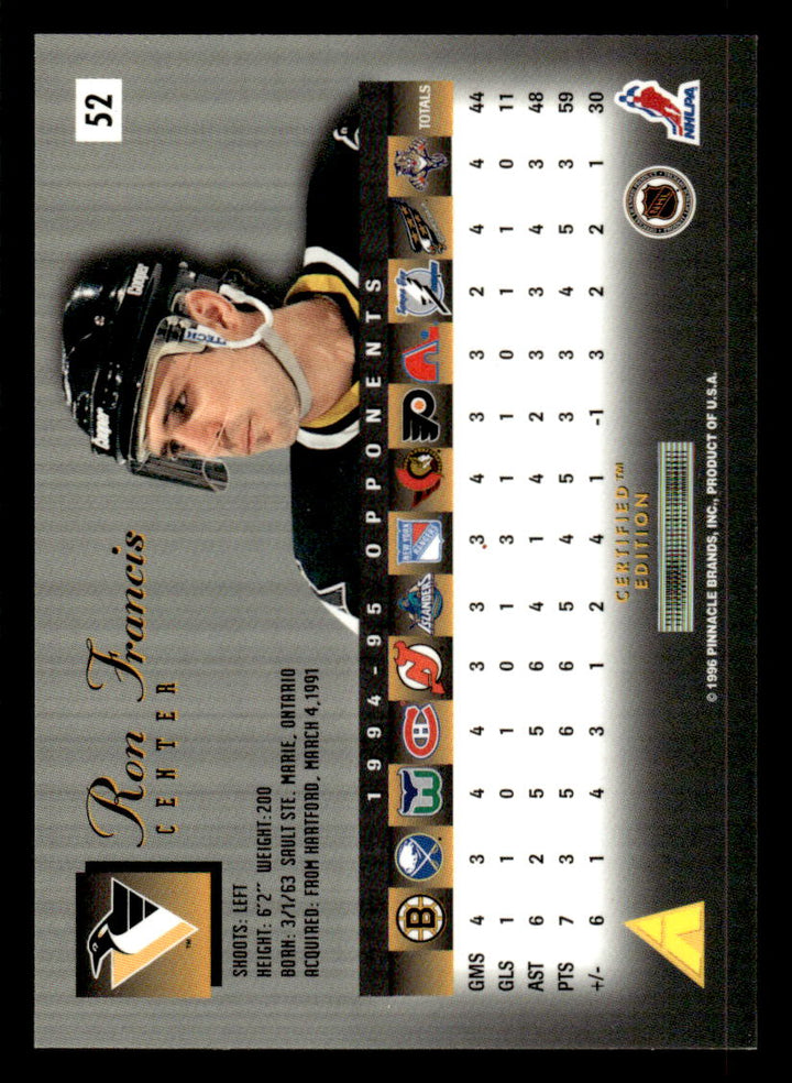 1995 SELECT CERTIFIED RON FRANCIS 52 MINT HOCKEY PITTSBURGH PENGUINS