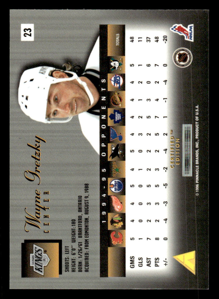 1995 SELECT CERTIFIED WAYNE GRETZKY 23 MINT HOCKEY LOS ANGELES KINGS