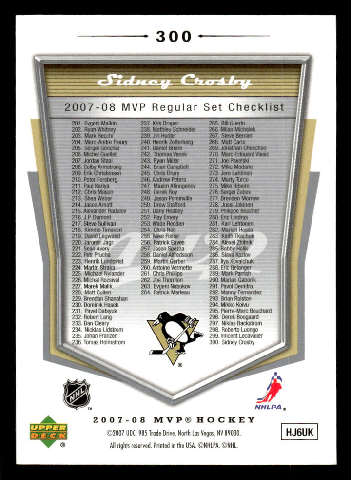 2007 UPPER DECK MVP SIDNEY CROSBY 300 MINT HOCKEY PITTSBURGH PENGUINS