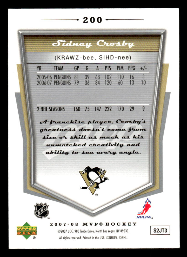 2007 UPPER DECK MVP SIDNEY CROSBY 200 MINT HOCKEY PITTSBURGH PENGUINS