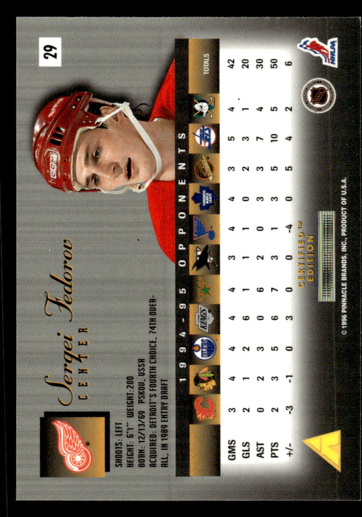 1995 SELECT CERTIFIED SERGEI FEDOROV 29 MINT HOCKEY DETROIT RED WINGS