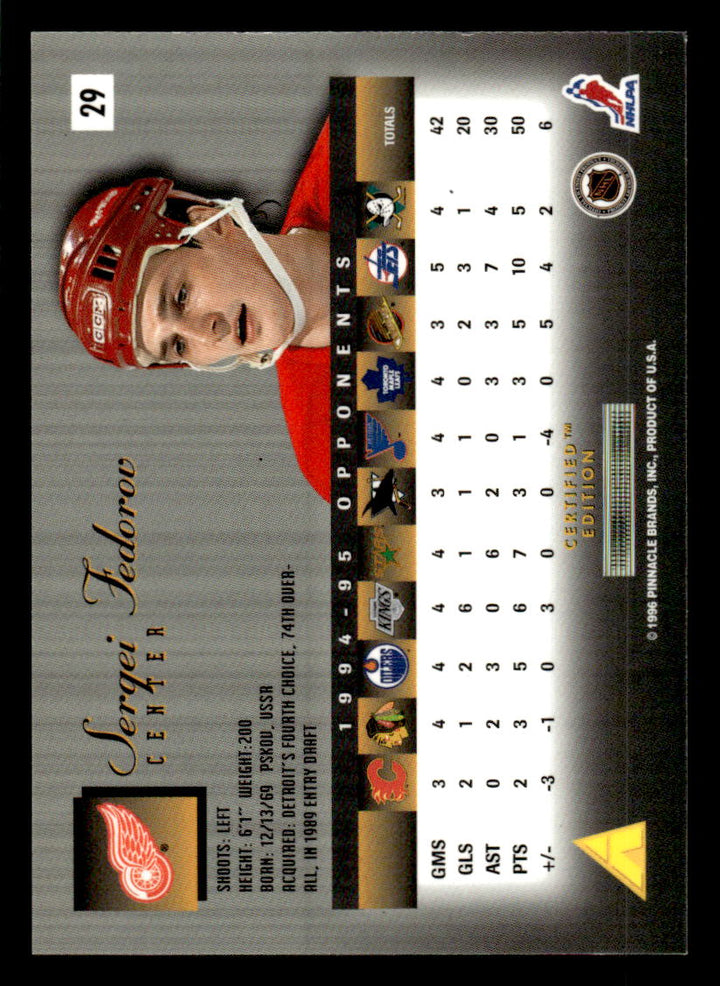 1995 SELECT CERTIFIED SERGEI FEDOROV 29 MINT HOCKEY DETROIT RED WINGS