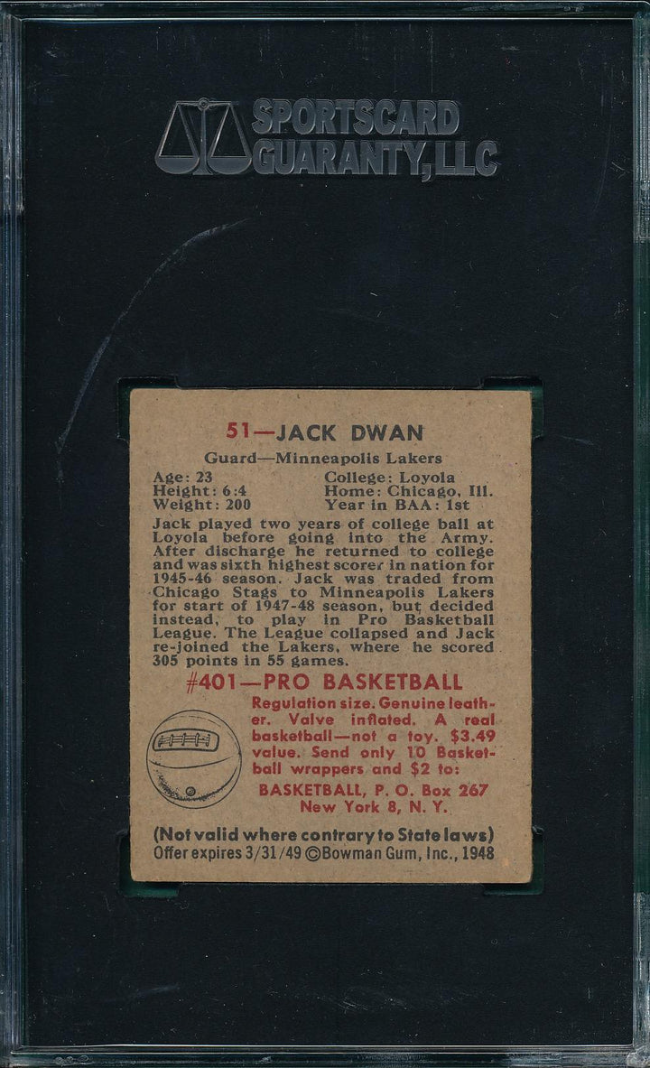 1948 BOWMAN JACK DWAN 51 EX HIGH # SGC 5 BASKETBALL MINNEAPOLIS LAKERS