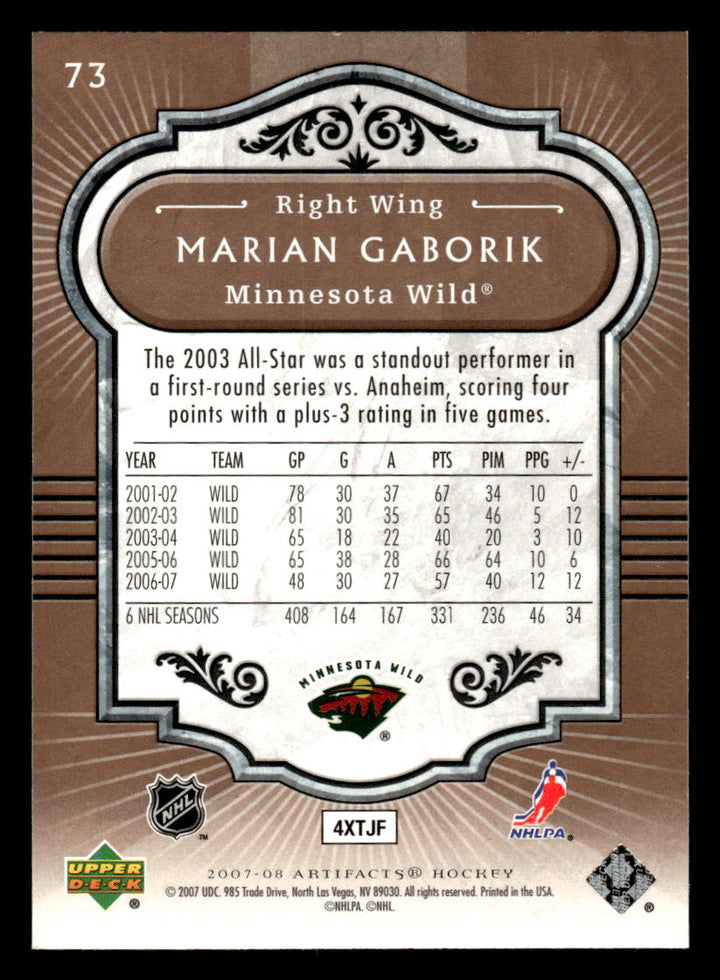 2007 UPPER DECK ARTIFACTS MARIAN GABORIK 73 MINT HOCKEY MINNESOTA WILD