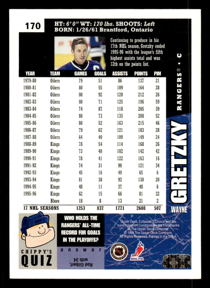 1996 COLLECTOR'S CHOICE WAYNE GRETZKY 170 MINT HOCKEY NEW YORK RANGERS