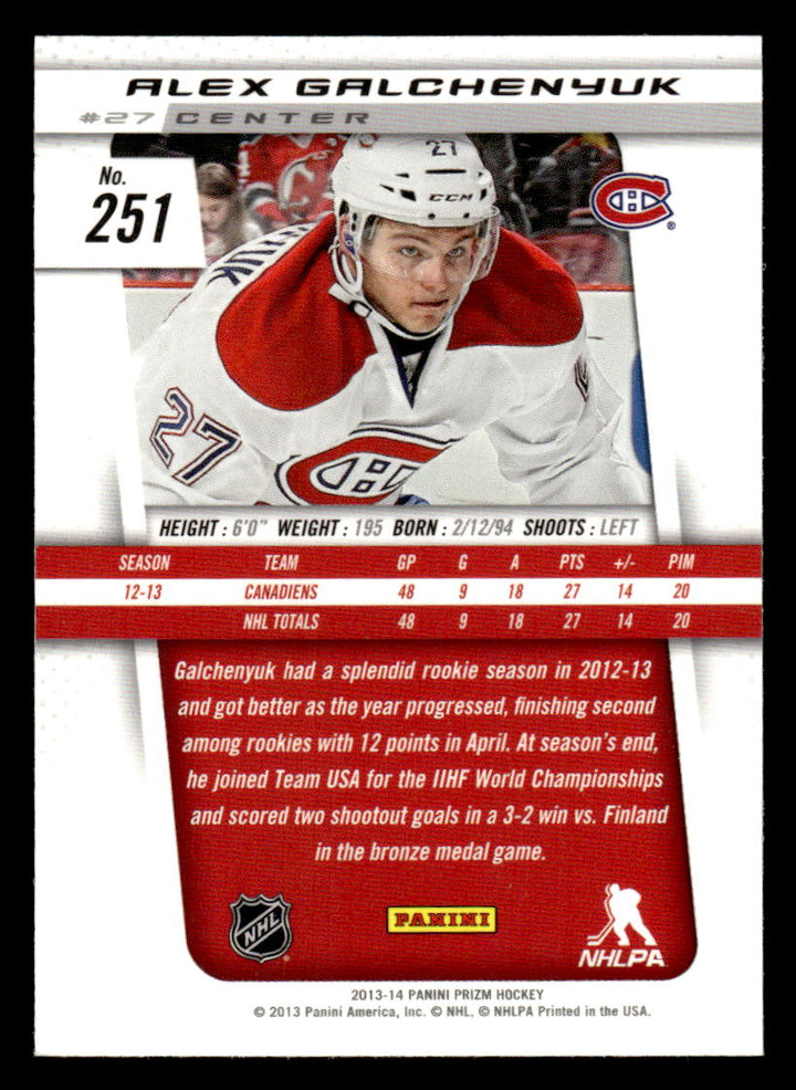 2013 PANINI PRIZM ALEX GALCHENYUK 251 MINT RC HOCKEY MONTREAL CANADIENS
