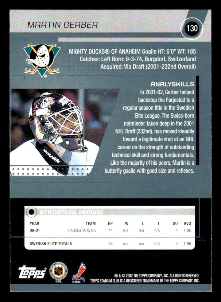 2002 STADIUM CLUB MARTIN GERBER 130 MINT RC HOCKEY ANAHEIM MIGHTY DUCKS