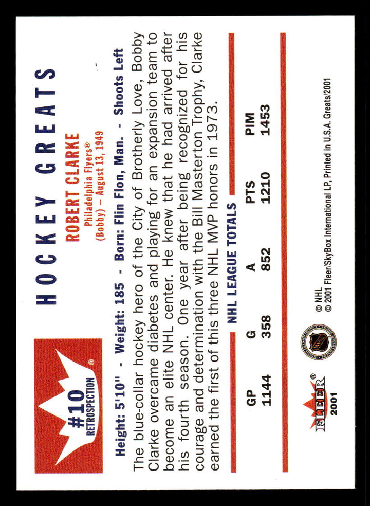 2001 FLEER GREATS OF THE GAME BOBBY CLARKE 10 MINT RETROSPECTION FLYERS