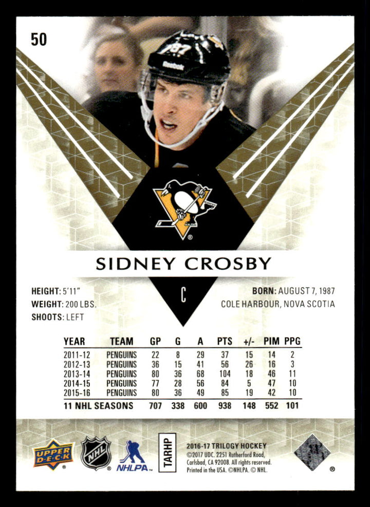 2016 UPPER DECK TRILOGY SIDNEY CROSBY 50 MINT HOCKEY PITTSBURGH PENGUINS