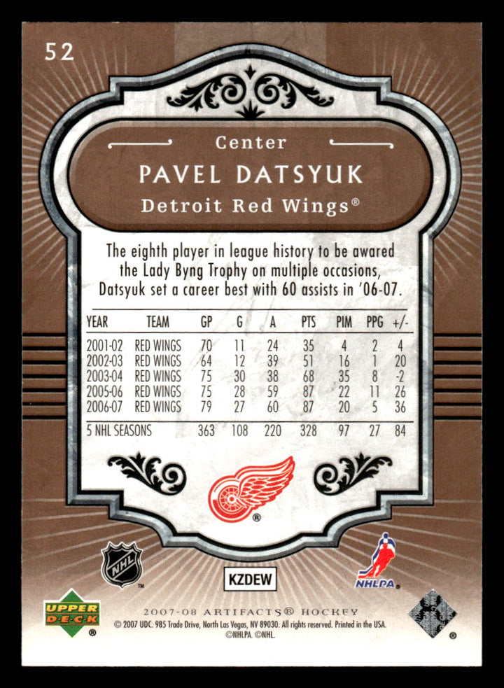 2007 UPPER DECK ARTIFACTS PAVEL DATSYUK 52 MINT HOCKEY DETROIT RED WINGS