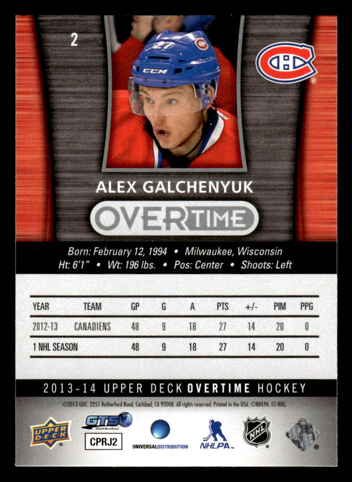 2013 UPPER DECK OVERTIME ALEX GALCHENYUK 2 MINT HOCKEY MONTREAL CANADIENS
