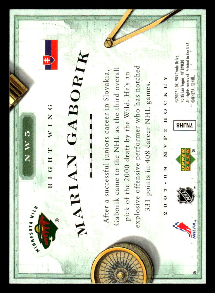 2007 UPPER DECK MVP MARIAN GABORIK NW5 MINT NEW WORLD ORDER MINNESOTA WILD