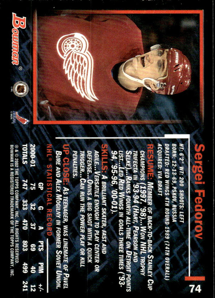2001 BOWMAN YOUNGSTARS SERGEI FEDOROV 74 NRMT NRMT HOCKEY DETROIT RED WINGS