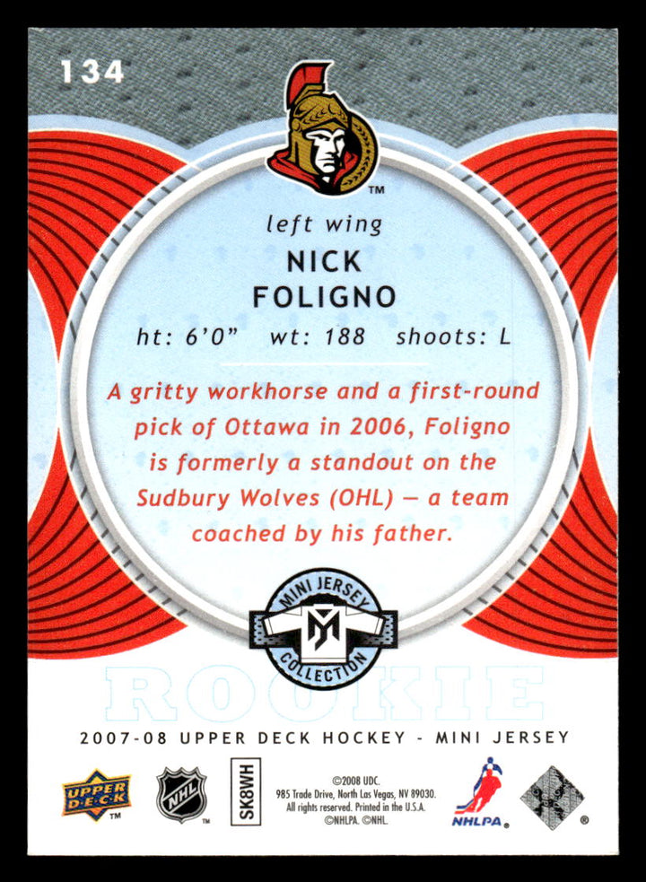 2007 UPPER DECK MINI JERSEY NICK FOLIGNO 134 MINT RC HOCKEY OTTAWA SENATORS