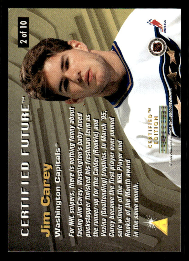 1995 SELECT CERTIFIED JIM CAREY 2 MINT CERTIFIED FUTURE WASHINGTON CAPITALS
