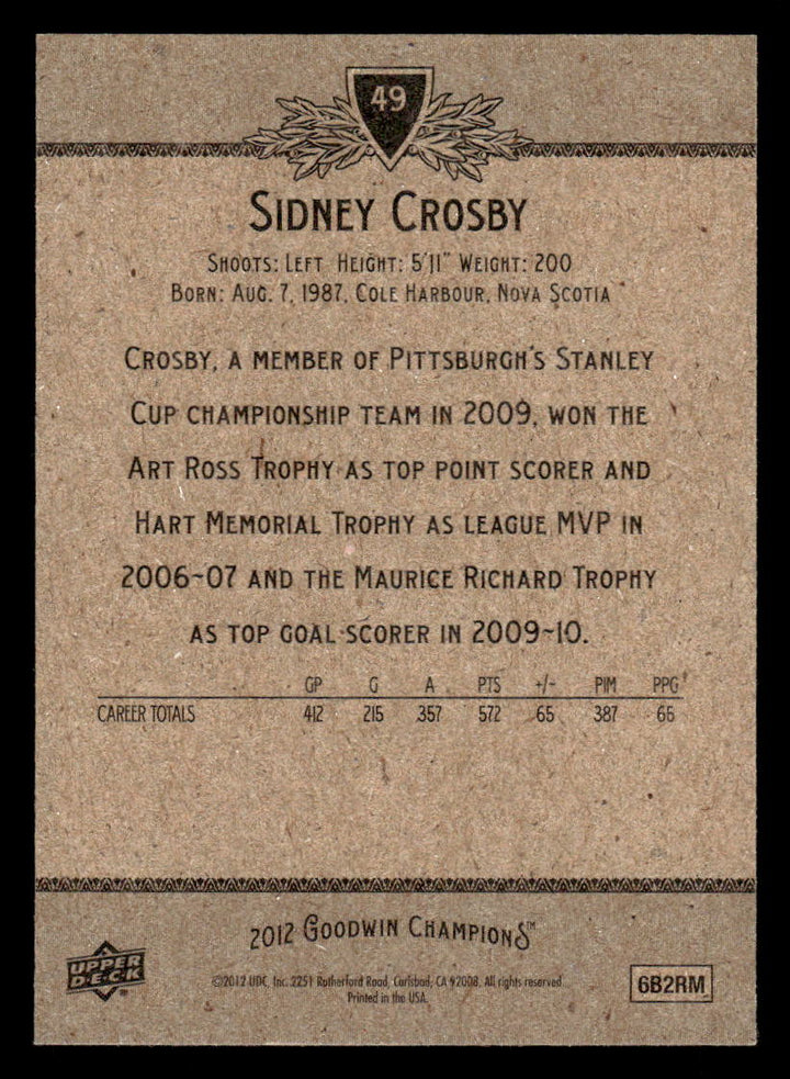 2012 UPPER DECK GOODWIN CHAMPIONS SIDNEY CROSBY 49 NRMT PITTSBURGH PENGUINS