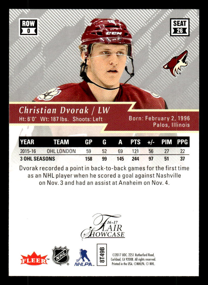 2016 FLEER SHOWCASE CHRISTIAN DVORAK 26 MINT FLAIR SHOWCASE ARIZONA COYOTES