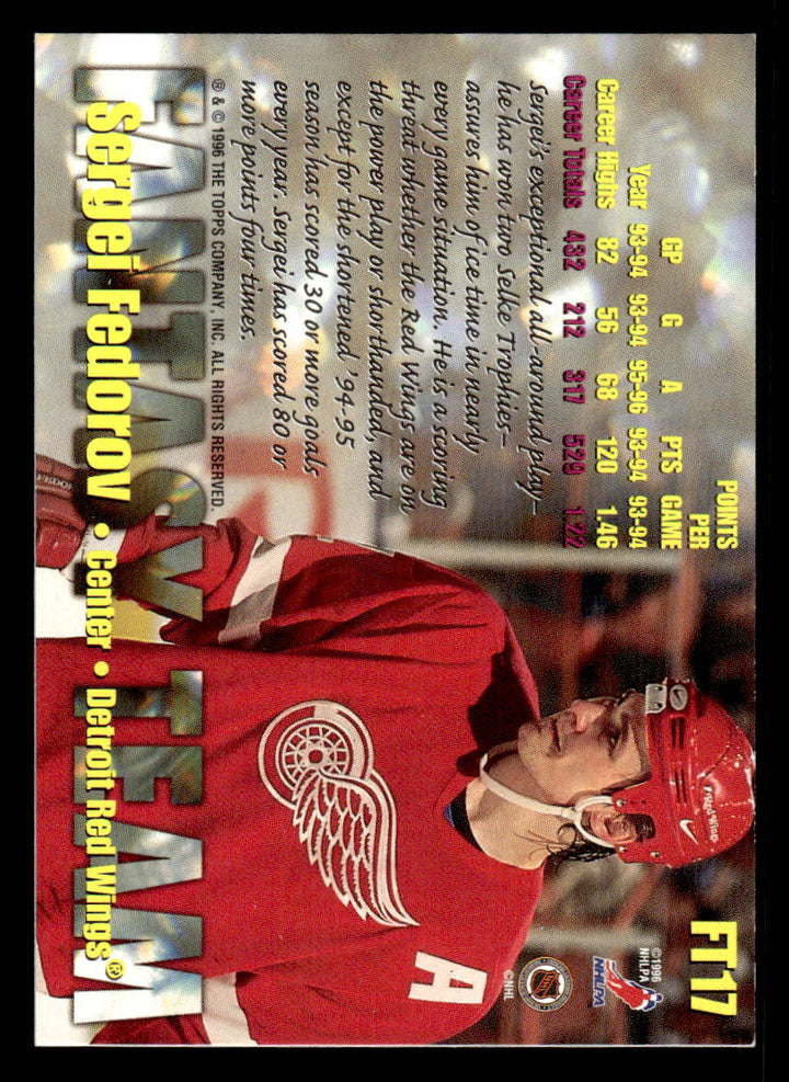 1996 TOPPS NHL PICKS SERGEI FEDOROV FT17 NRMT FANTASY TEAM DETROIT RED WINGS