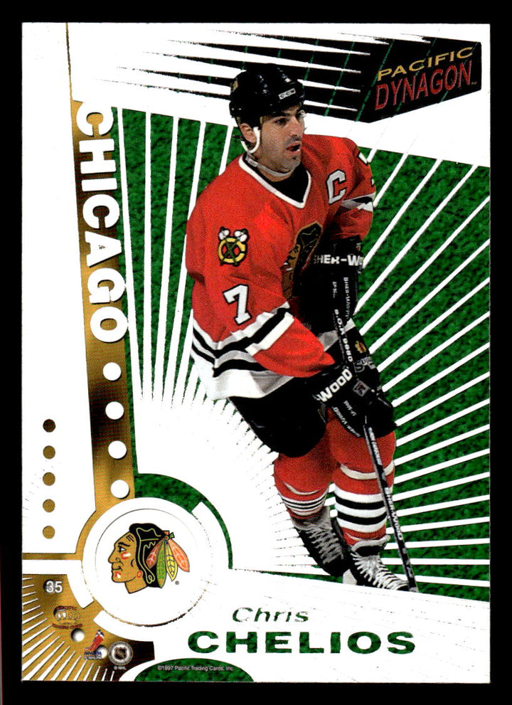 This CHRIS CHELIOS, from the 1997 PACIFIC DYNAGON set, is in MINT condition.